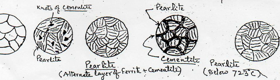 (3) pearlite +cementite for steels having more than 0.83% carbon.